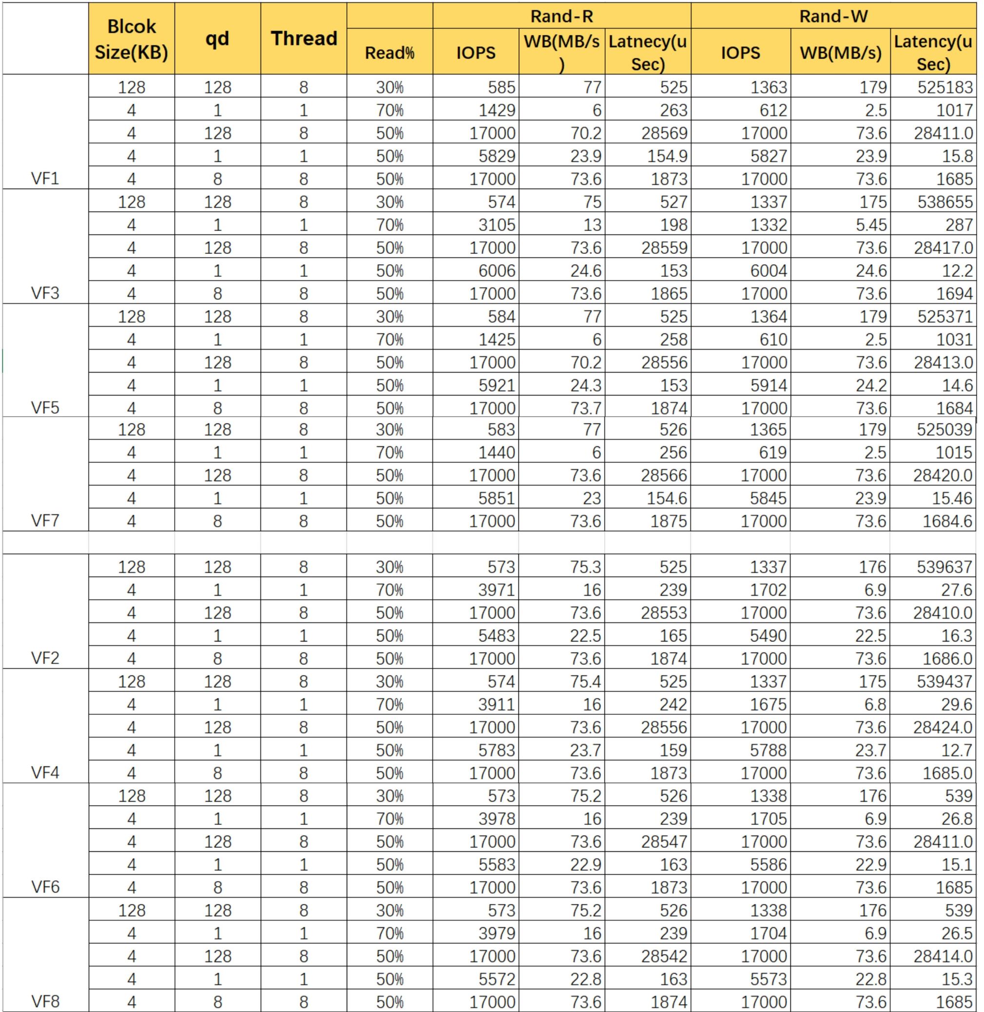 最終,經(jīng)過騰訊云服務(wù)器與供應(yīng)鏈NPI團隊、騰訊云服務(wù)器虛擬化團隊、憶聯(lián)公司一起配合努力,在騰訊云的實驗室機房進行了長達兩個月的全面測試驗證工作,驗證結(jié)果表明SR-IOV特性在公有云場景下可以帶來一定的價值。